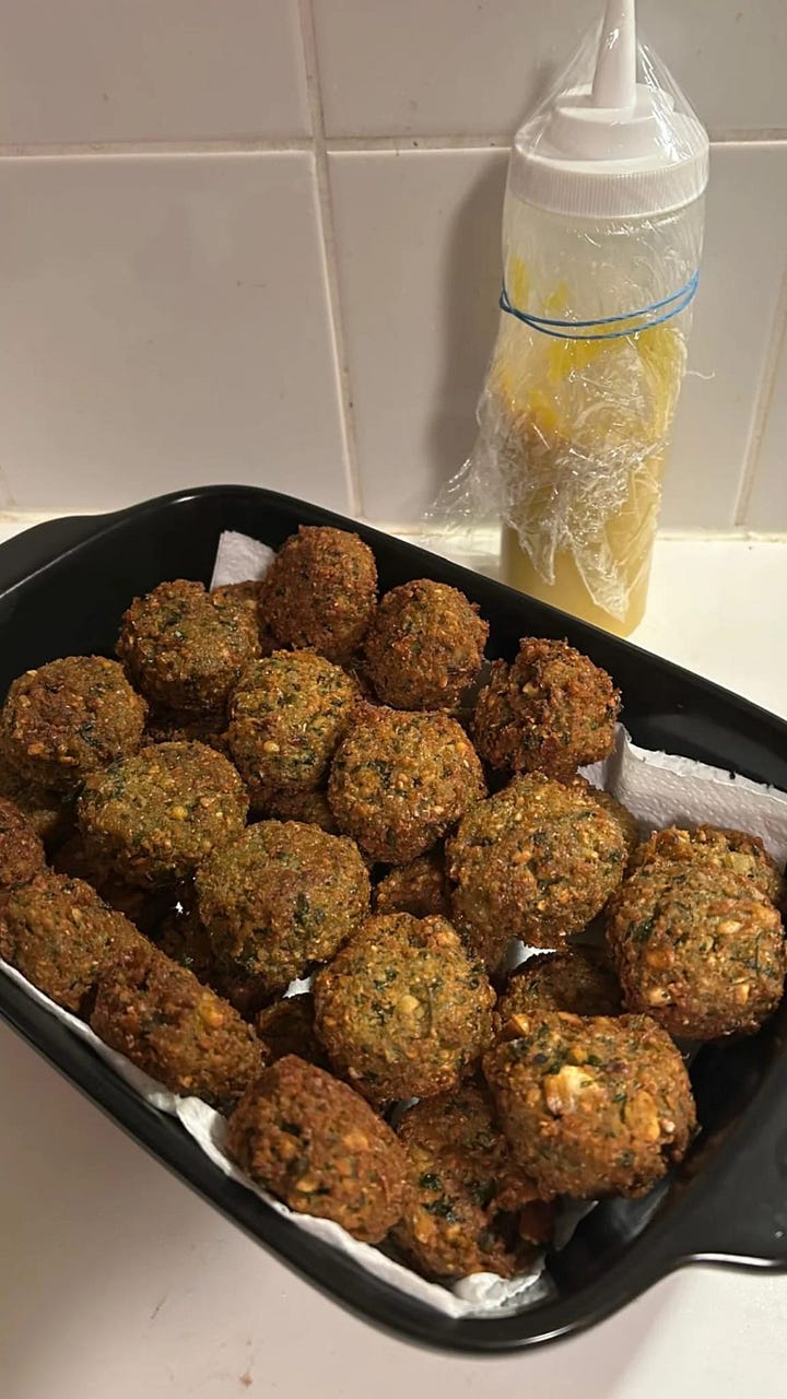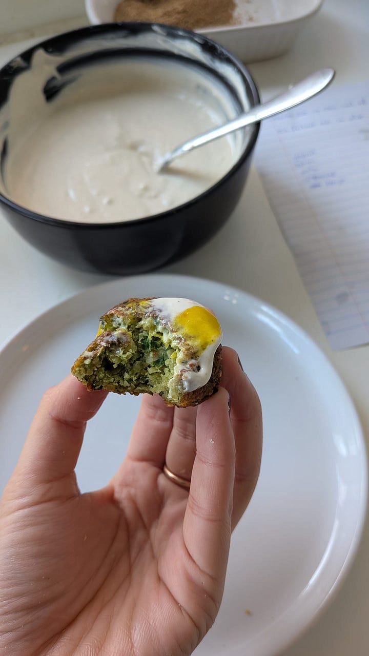 A little baking powder creates a tender falafel. This is another tip I learnt from my classmate. As the falafels fry, the baking powder produces carbon dioxide, resulting in tiny air pockets. This is what produces a fluffy interior instead of a dense, compact one.